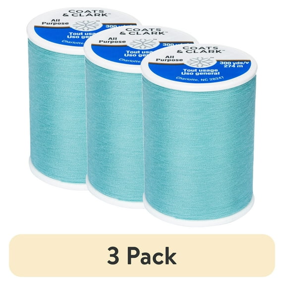 - 3-pack of Coats & Clark All Purpose Mist Aqua Polyester Thread, 300 Yards