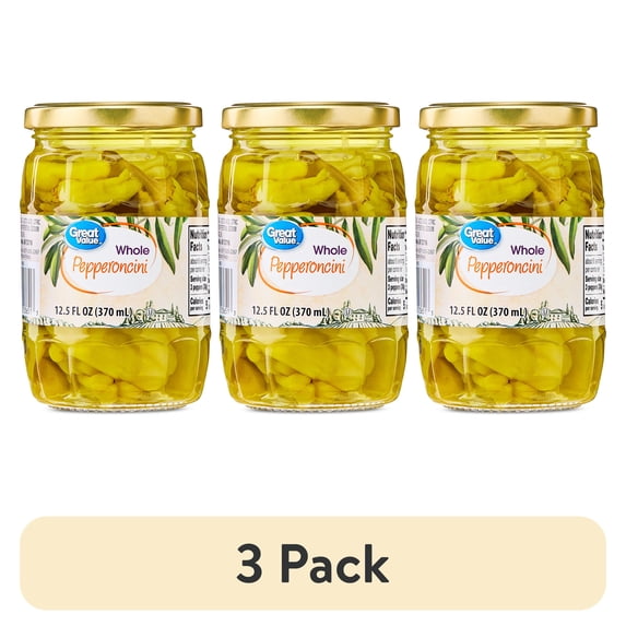 - 3-pack of Great Value Whole Pepperoncini, 12 fl oz