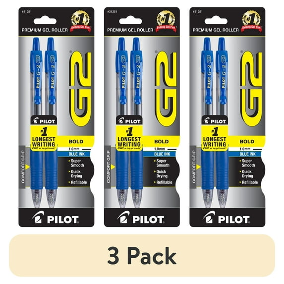 - 3-pack of Pilot G2 Retractable Gel Pens, Bold Point, Blue, 2 Count