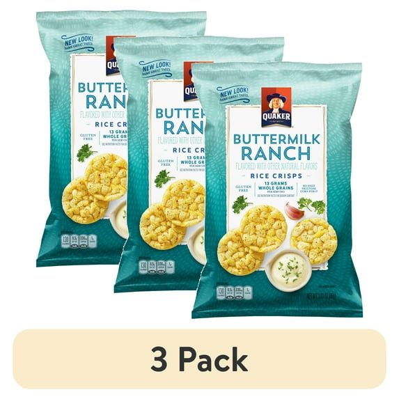 - 3-pack of Quaker Rice Crisps, Buttermilk Ranch, 3.03 oz Bag