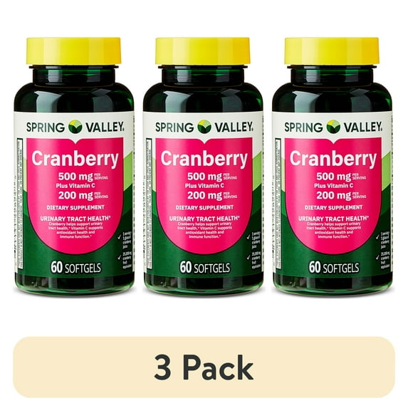 (3 pack) Spring Valley Cranberry Urinary Tract Support Dietary Supplement Softgels, 500mg, 60 Count $23.79 13.2 ¢/count