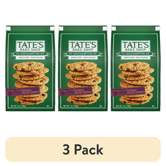 (3 pack) Tate's Bake Shop Oatmeal Raisin Cookies, 7 oz