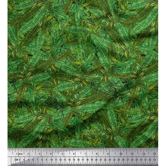 Soimoi Cotton Voile Fabric Palm Leaves Print Fabric by The Yard 56 Inch Wide
