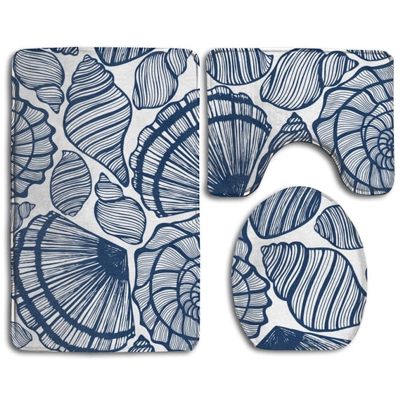 Hero image 0 of PUDMAD Texture Doodle Seashells Boho 3 Piece Bathroom Rugs Set Bath Rug Contour Mat and Toilet Lid Cover, 0 of 2