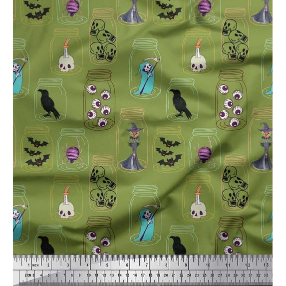 Soimoi Poly Georgette Fabric Ghost,Skull & Witch Halloween Print Sewing Fabric Yard 42 Inch Wide