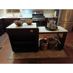 I really like how beautiful the island is once it was put together. it wasn't the most difficult but neither the easiest to follow the instructions but managed to get it completed. I like the storage that it has and the two pull out drawers are roomy too and it's perfect for our kitchen area. The marble top is nice but not sure if i will place anything hot on it, but it looks nice and lastly the wheels roll easily for cleaning the carpet underneath and easy to push around. We are receiving a lot of compliments and im so happy we ordered it!