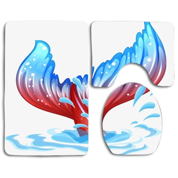 Hero image 0 of PUDMAD Mermaid Pink Blue 3 Piece Bathroom Rugs Set Bath Rug Contour Mat and Toilet Lid Cover, 0 of 2