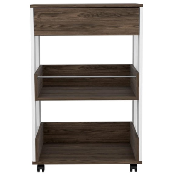 FM FURNITURE Dundee 2-Shelf Engineered Wood Kitchen Cart in Dark Walnut/White