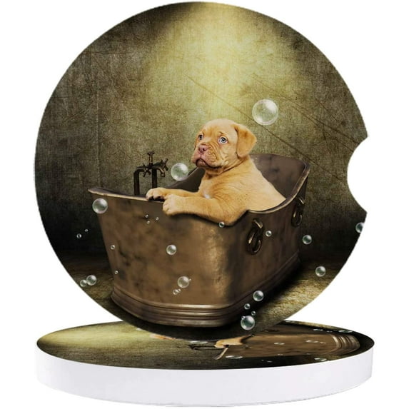 Hero image 0 of FMSHPON Puppy Retro Bathtub and Bubbles Set of 6 Car Coaster for Drinks, Absorbent Ceramic Stone Coasters Cup Mat with Cork Base for Home Kitchen Room Coffee Table Bar Decor, 0 of 5