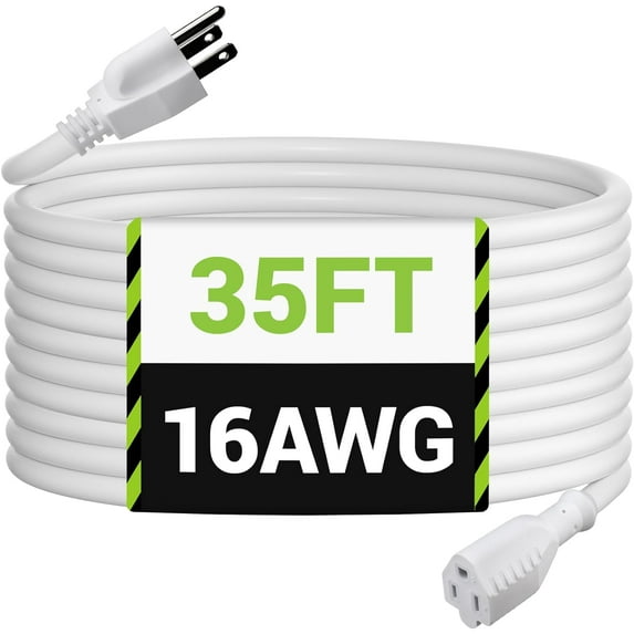 - 【General Purpose Indoor & Outdoor】Use this white 35 foot electrical extension cord outdoors for holiday lights, patio lights or yard decorations. Also rated for indoor use to power your electronics, tools and appliances.