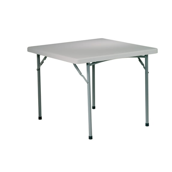 - Durable Resin Top: 36" Square Folding Resin Table features a heavy-duty blow-mold light grey resin top for durability and easy cleanup.