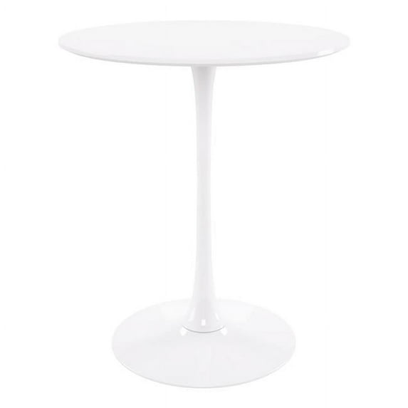 - Mid-Century modern inspired, all over white round pedestal bar table