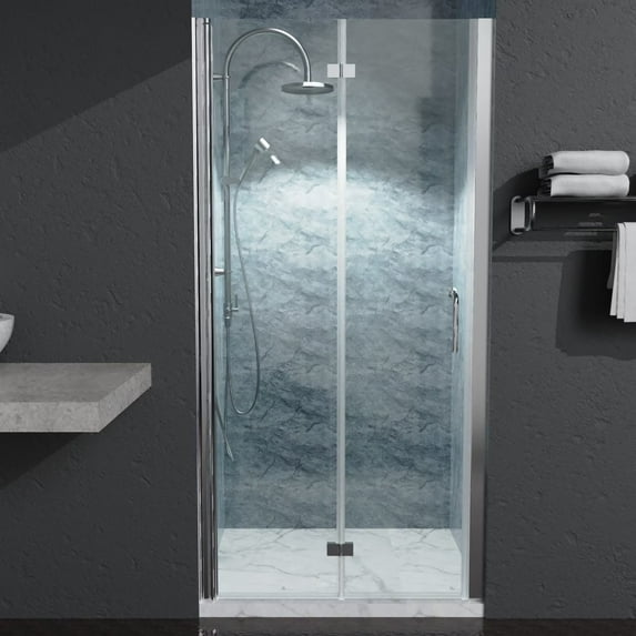 Sponsored$27800current price $278.00Sunny Shower 32" in.W x 72" in.H Bi-Fold Pivot Glass Frameless Chrome Shower Door with 1/4" Clear Glass