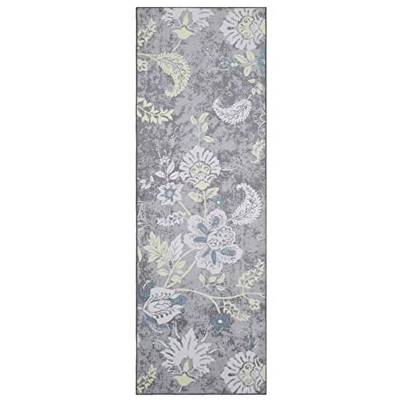 Floral Print Area Rug, Modern Distressed Foldable Low Pile Non Slip Floor Carpet