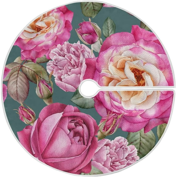 Hero image 0 of FMSHPON Watercolor Rose Xmas Christmas Tree Skirt Stand Mat for Holiday Party Decoration Indoor Outdoor 36 inches, 0 of 6