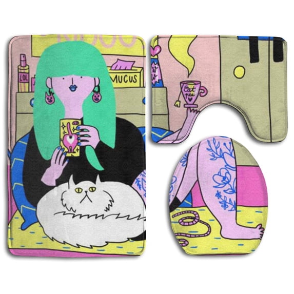 Hero image 0 of PUDMAD Leisure Girl 3 Piece Bathroom Rugs Set Bath Rug Contour Mat and Toilet Lid Cover, 0 of 2