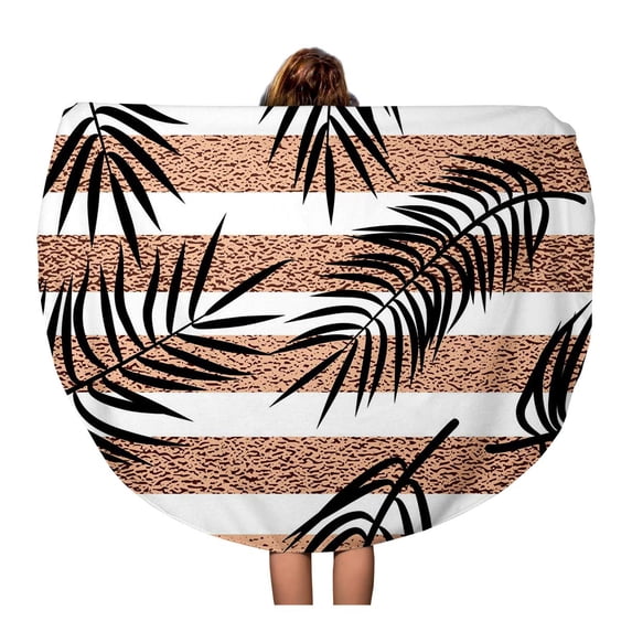 Hero image 0 of SIDONKU 60 inch Round Beach Towel Blanket Paradise Summer Tropical Palm Leaves on Copper Stripes Aloha Travel Circle Circular Towels Mat Tapestry Beach Throw, 0 of 2
