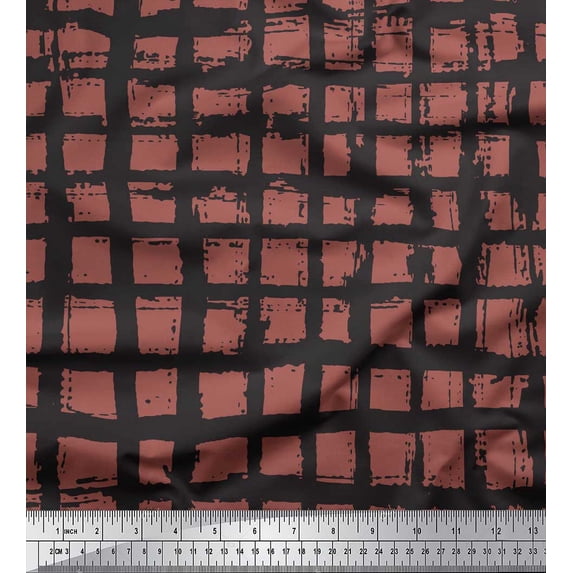 Soimoi Brown Poly Georgette Fabric Check Check Printed Fabric 1 Yard 52 Inch Wide