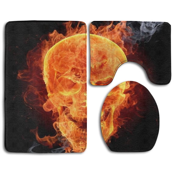 Hero image 0 of PUDMAD Fire Skull 3 Piece Bathroom Rugs Set Bath Rug Contour Mat and Toilet Lid Cover, 0 of 2