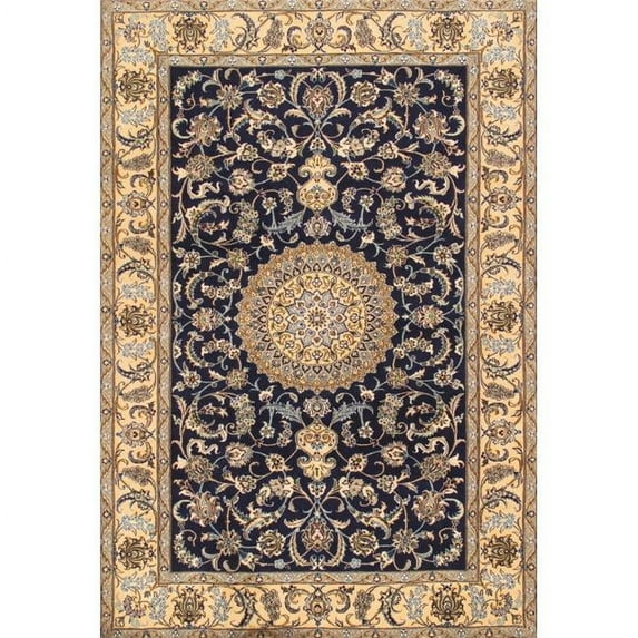 Pasargad Home 030815 Azerbaijan Collection Hand-Knotted Silk & Wool Area Rug- 6 ft. 5 in. X 9 ft. 9 in. Navy