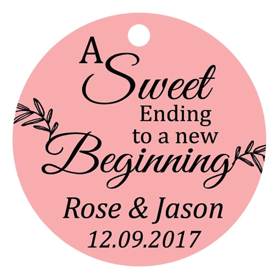100 PCS A Sweet Ending To A New Begnning Circle Hang Tags Personalized Wedding Favor Gift Tags