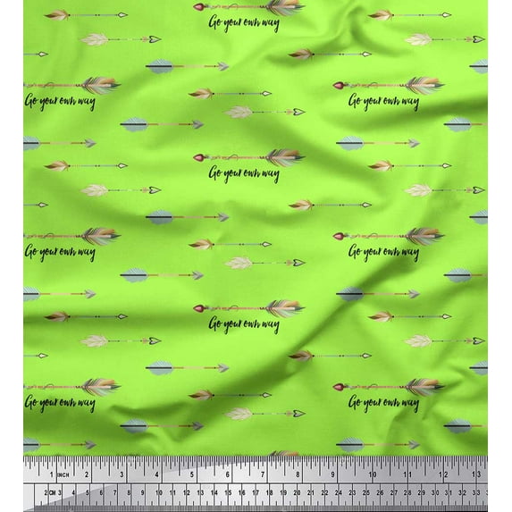 Soimoi Green Silk Fabric Text & Arrow Tribal Print Sewing Fabric Yard 42 Inch Wide