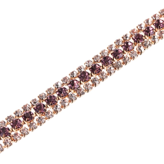 Hero image 0 of 1 Yard 3 Rows Rhinestone Chain, 8.5mm Crystal Close Claw Chain Trim (Gold, Light Purple/White), 0 of 6