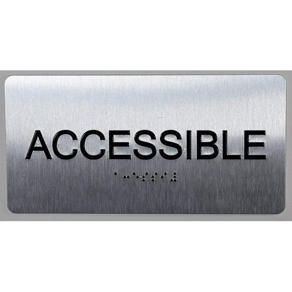 ACCESSIBLE Sign Silver-Tactile Touch Braille Sign (Aluminium !!, Brush Silver,Size 4x8)- The Sensation line(ref-2022-4)