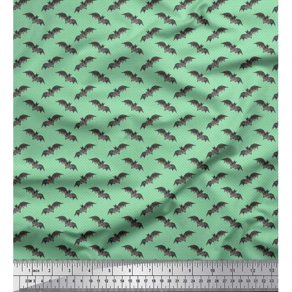 Hero image 0 of Soimoi Green Modal Satin Fabric Dot & Bat Animal Print Fabric by the Yard 42 Inch Wide, 0 of 3