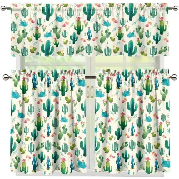 Kitchen Curtains Sets with Valance and Tier Sets Kitchen Window Coverings Tiered Kitchen Curtains for Kitchen Bathroom Home Decor Green Cactus