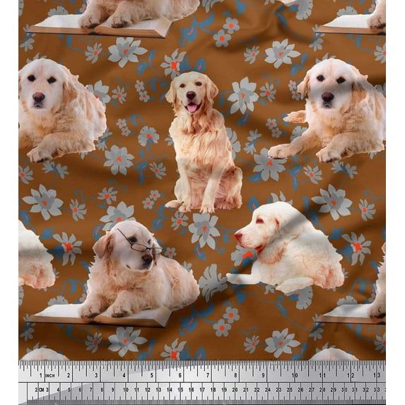 Hero image 0 of Soimoi Japan Crepe Satin Fabric Floral,Book & Golden Retriever Dog Print Sewing Fabric Yard 42 Inch Wide, 0 of 1