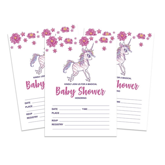 Inkdotpot 30 Fill In StyleBaby Shower Invitation Cards Unicorn Floral Blank Invites