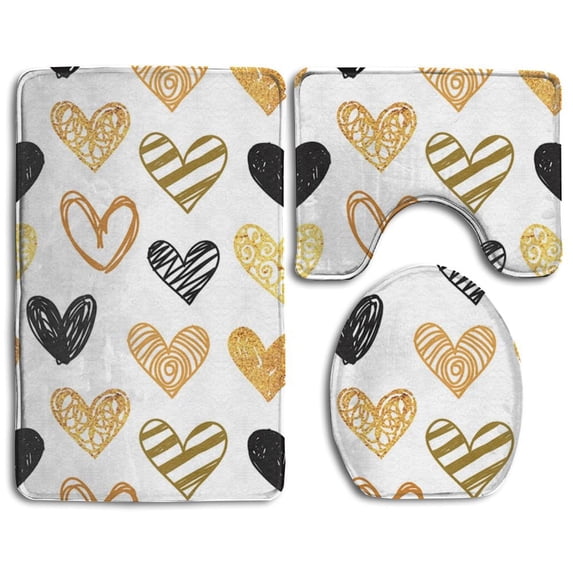 Hero image 0 of PUDMAD Hand Painted Golden And Black Hearts Unique 3 Piece Bathroom Rugs Set Bath Rug Contour Mat and Toilet Lid Cover, 0 of 2