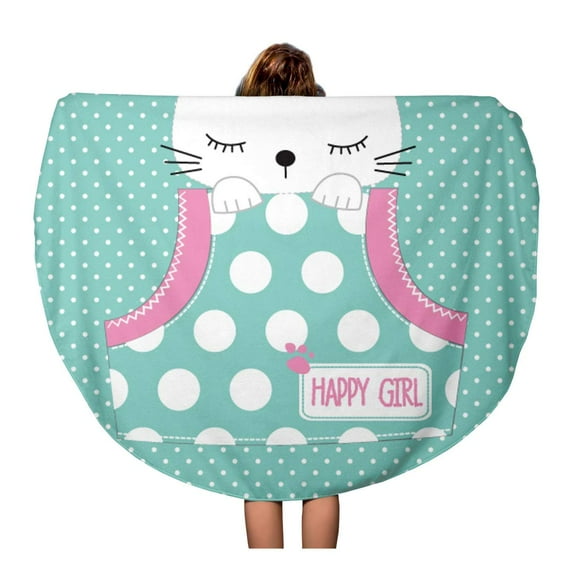 LADDKA 60 inch Round Beach Towel Blanket Cute Cat in The Pocket on Polka Dots Graphics Travel Circle Circular Towels Mat Tapestry Beach Throw