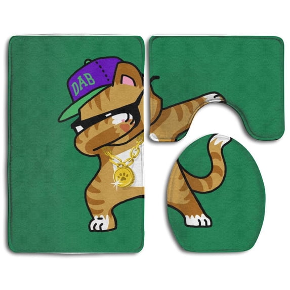 Hero image 0 of GOHAO Dabbing Cat Funny Vintage 3 Piece Bathroom Rugs Set Bath Rug Contour Mat and Toilet Lid Cover, 0 of 2