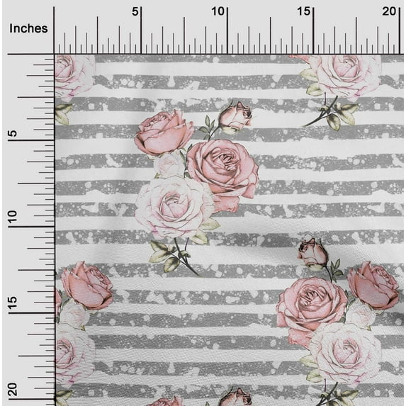 Hero image 0 of oneOone Cotton Jersey White Fabric Stripe & Rose Floral Sewing Material Print Fabric By The Yard 58 Inch Wide, 0 of 4