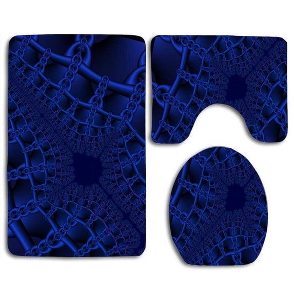 Hero image 0 of PUDMAD Fractal Network Chain Computer Graphics Chaotic Abstraction 3 Piece Bathroom Rugs Set Bath Rug Contour Mat and Toilet Lid Cover, 0 of 2
