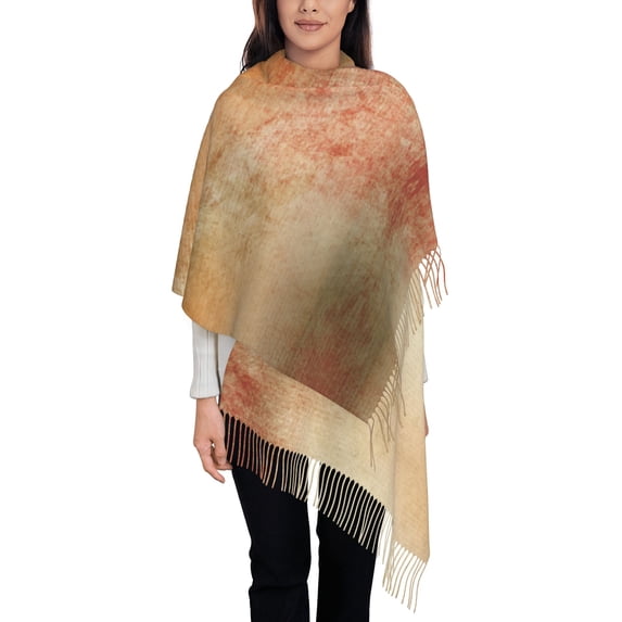 Women's Fashion Tassel Scarf, Abstract Vintage Fall Long Shawl, Lightweight and Warm