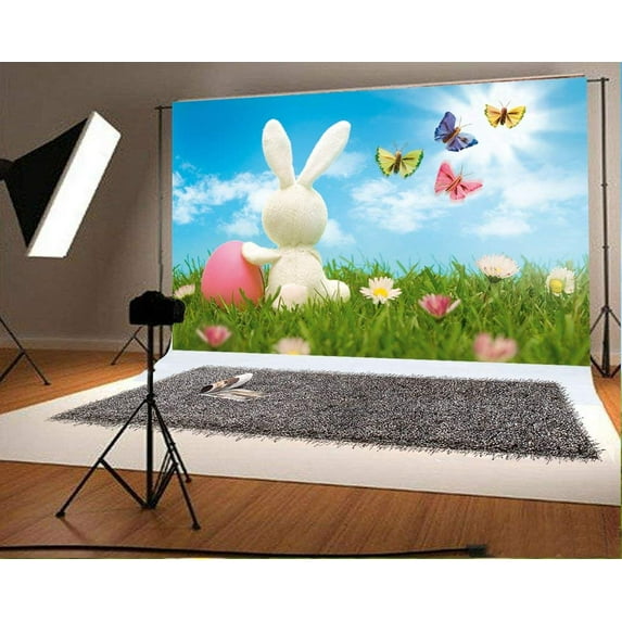 Hero image 0 of ABPHOTO Polyester Backdrop Easter Photography Backdrop Blue Sky Rabbit Butterfly Spring Background Backdrop for Parties Kids 7x5ft, 0 of 3