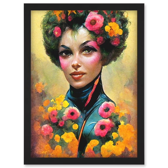 The Flower Girl Watercolour Pink Yellow Vibrant Fun Painting Artwork Framed Wall Art Print A4