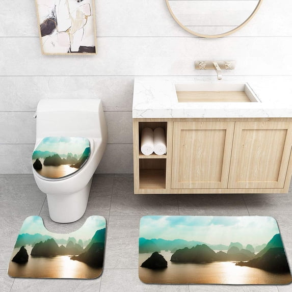 Hero image 0 of PUDMAD Halong Bay Vietnam Aerial View at Sunset Panorama 3 Piece Bathroom Rugs Set Bath Rug Contour Mat and Toilet Lid Cover, 0 of 2
