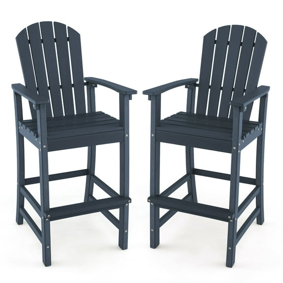 Gymax Set Of 2 Outdoor HDPE Bar Height Stool Patio Tall Chair Armrest Footrest All Weather Navy