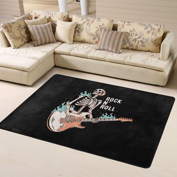 Hero image 0 of DouZhe Rock Skull Guitarist Pattern Area Rugs Non-Slip Machine Washable Floor Mat, Style Carpet Doormat, 63x48 inches, 0 of 6