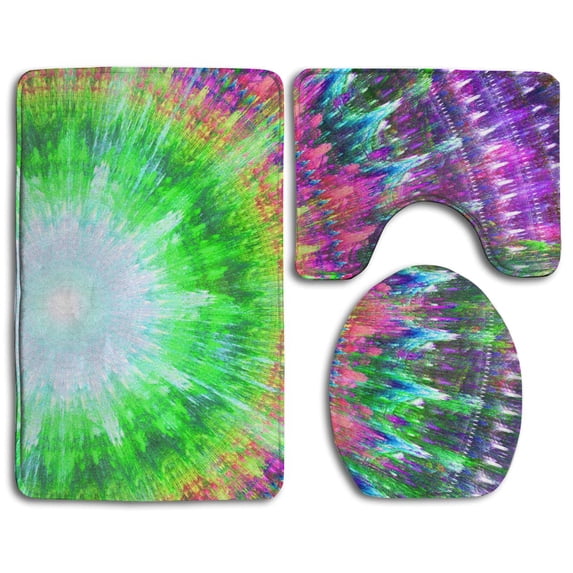 Hero image 0 of PUDMAD Spiral Tie Dye 3 Piece Bathroom Rugs Set Bath Rug Contour Mat and Toilet Lid Cover, 0 of 2