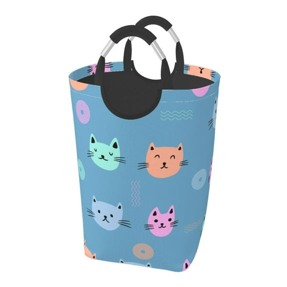Hero image 0 of DouZhe 50L Rectangular Laundry Basket, Colorful Cartoon Cats Face Prints Waterproof Foldable Laundry Hamper with Aluminum Handles, 0 of 6