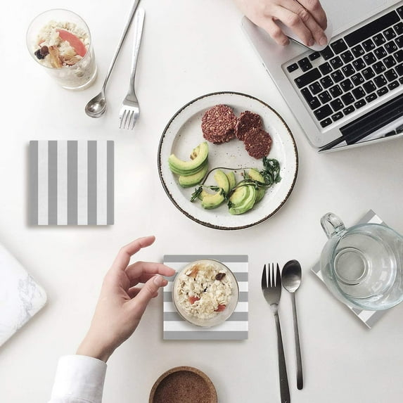 Hero image 0 of FMSHPON Grey White Stripe Set of 6 Coaster for Drinks, Absorbent Ceramic Stone Coasters Cup Mat with Cork Base for Home Kitchen Room Coffee Table Bar Decor, 0 of 4