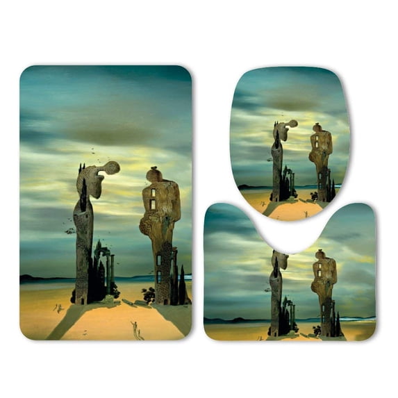 Hero image 0 of PUDMAD Coast Buildings Lost Corners Dilapidated Houses Humanoids Window 3 Piece Bathroom Rugs Set Bath Rug Contour Mat and Toilet Lid Cover, 0 of 2