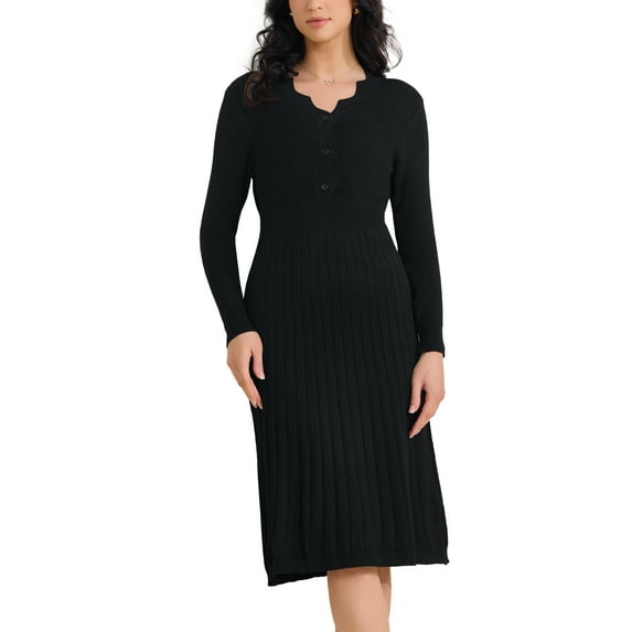 Hero image 0 of INSPIRE CHIC Women's Ribbed Knit Dress Long Sleeve V Neck Lightweight Sweater Elegant Pleated Dresses XS Black, 0 of 6