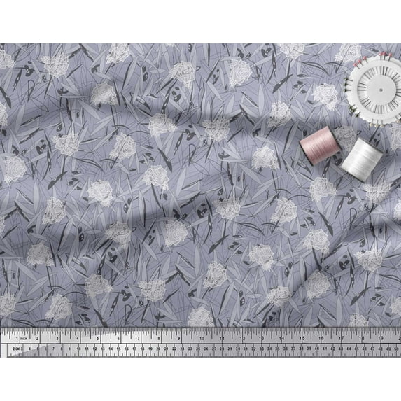 Soimoi Crepe Silk Fabric Leaves & Rose Floral Printed Fabric 1 Yard 42 Inch Wide
