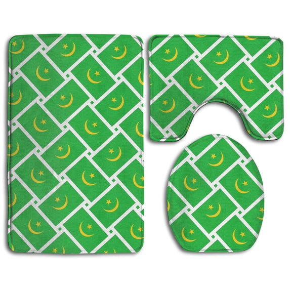 Hero image 0 of PUDMAD Mauritania Flag Weave 3 Piece Bathroom Rugs Set Bath Rug Contour Mat and Toilet Lid Cover, 0 of 2
